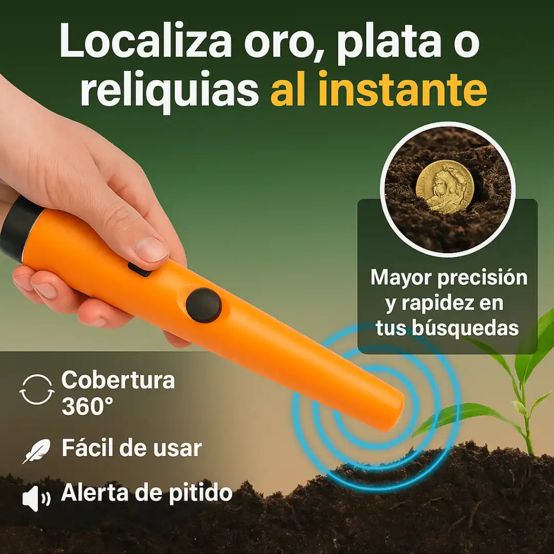 Este dispositivo detecta una amplia variedad de metales como oro, plata, cobre, hierro, acero y aluminio, incluso si están parcialmente enterrados. Es ideal para búsquedas en campo, playa o jardín