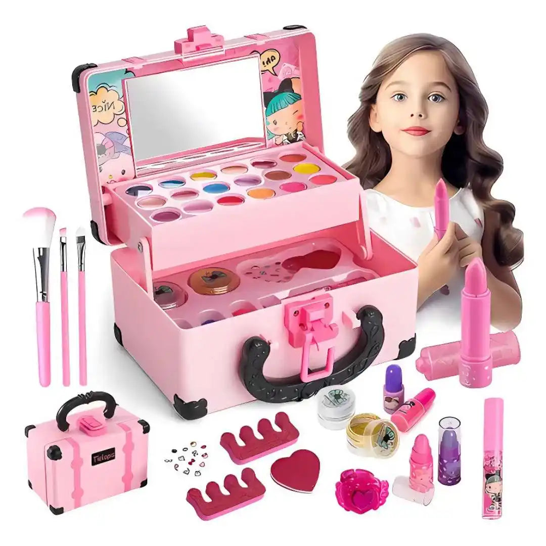 Imagina la emoción de tu hija al jugar con un kit de maquillaje real que es completamente seguro y fácil de usar.