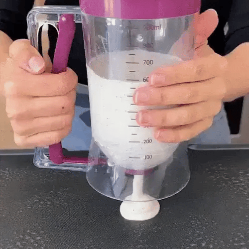 ¡Mezcla y dispensa la masa fácilmente! El cómodo mango, la forma cónica y la válvula de silicona del BATTERUP te permiten crear porciones perfectas para el desayuno y el postre.