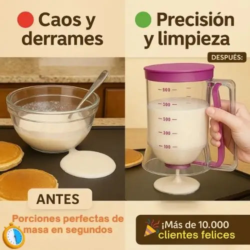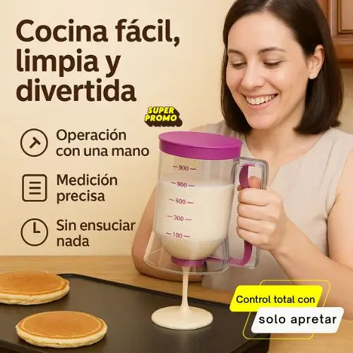 Simplemente vierte la masa en la sartén. Su manejo con una sola mano garantiza una dispensación precisa y rápida en todo momento